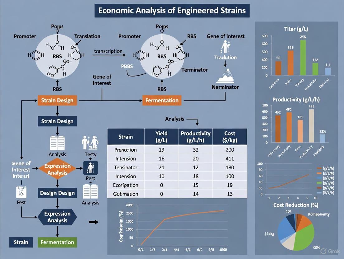 Evaluating the economic viability of engineered production strains requires a structured experimental approach that integrates both technical performance and economic metrics. The following protocol provides a standardized methodology for comparative analysis of strain performance under industrial-relevant conditions: